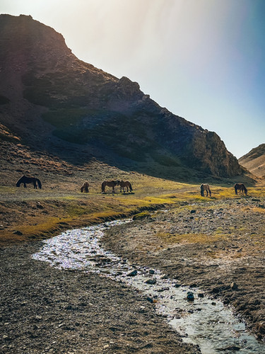 I hiked past grazing yaks and horses to a stream hidden deep in the valley. This valley is known for its shade clad canyons that prevent ice from melting well into the summer.